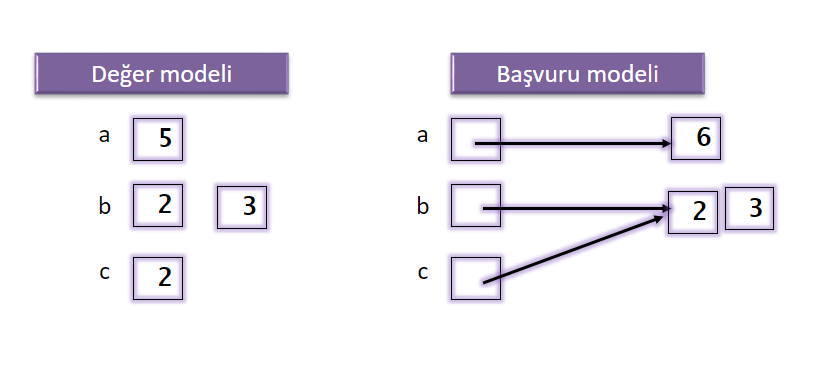 | Hafıza açısından verimli değildir. Aynı değişken için oluşturulmuş iki adet kopya vardır. | Hafıza açısından verimlidir. Kopyalama yapılmaz ve değeri tutmak için yinelenen veriler oluşturmaz. |